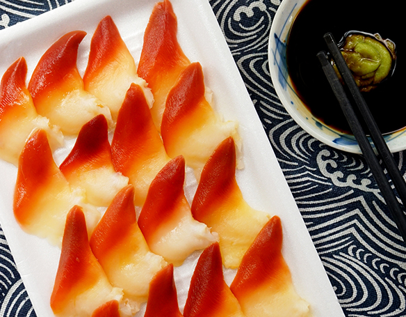 北極貝具有(yǒu)色澤明(míng)亮(紅、桔、白),味道鮮美(měi),肉質爽脆等特點,且含有(yǒu)豐富的(de)蛋白質和(hé)不飽和(hé)脂肪酸(DHA),是海(hǎi)鮮中的(de)極品。北極貝是在捕捉45分(fēn)鍾後即在捕撈船(chuán)上(shàng)加工(gōng)燙熟并急凍,因此隻需經自然解凍即可(kě)食用(yòng),安全衛生方便。用(yòng)北極貝可(kě)制(zhì)作刺身、壽司、色拉、火(huǒ)鍋等多種菜式,炒、蒸、扒、焖、炖皆可(kě)。也(yě)可(kě)放(fàng)在沙拉、壽司、意大(dà)利粉、開(kāi)胃食品和(hé)其他(tā)一些新鮮的(de)原料中食用(yòng)。